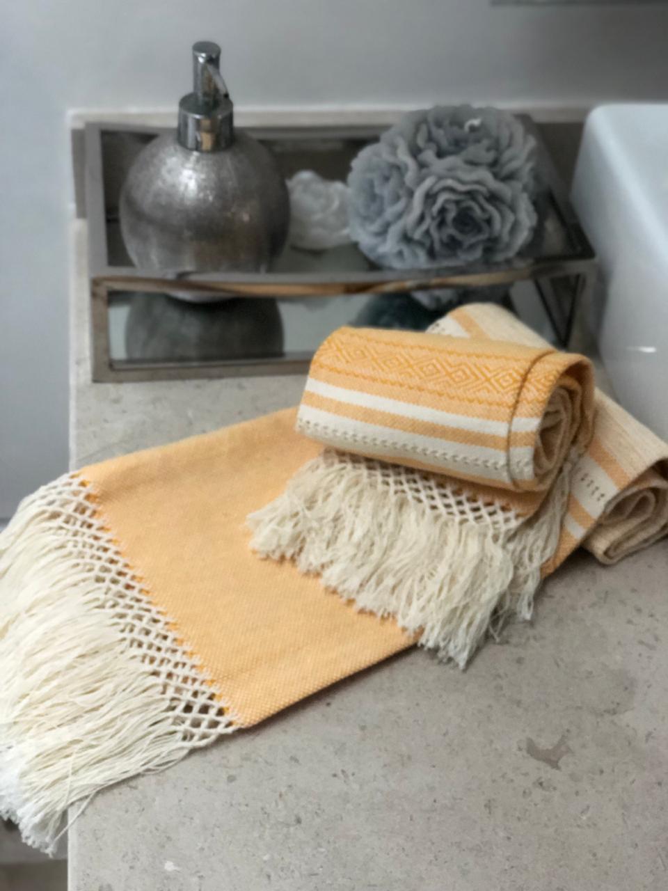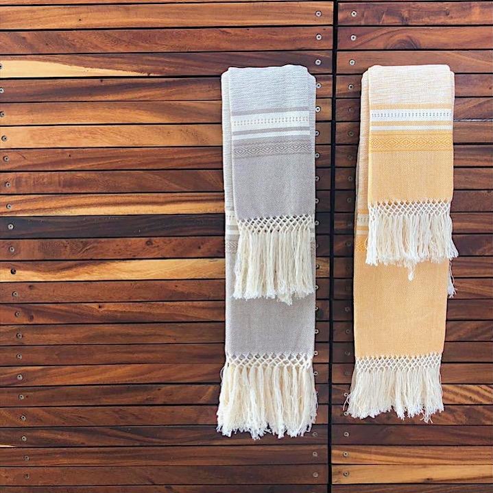 Set de 2 toallas (1 chica y 1 mediana) elaboradas en telar de pedal por artesanas indígenas en Oaxaca.